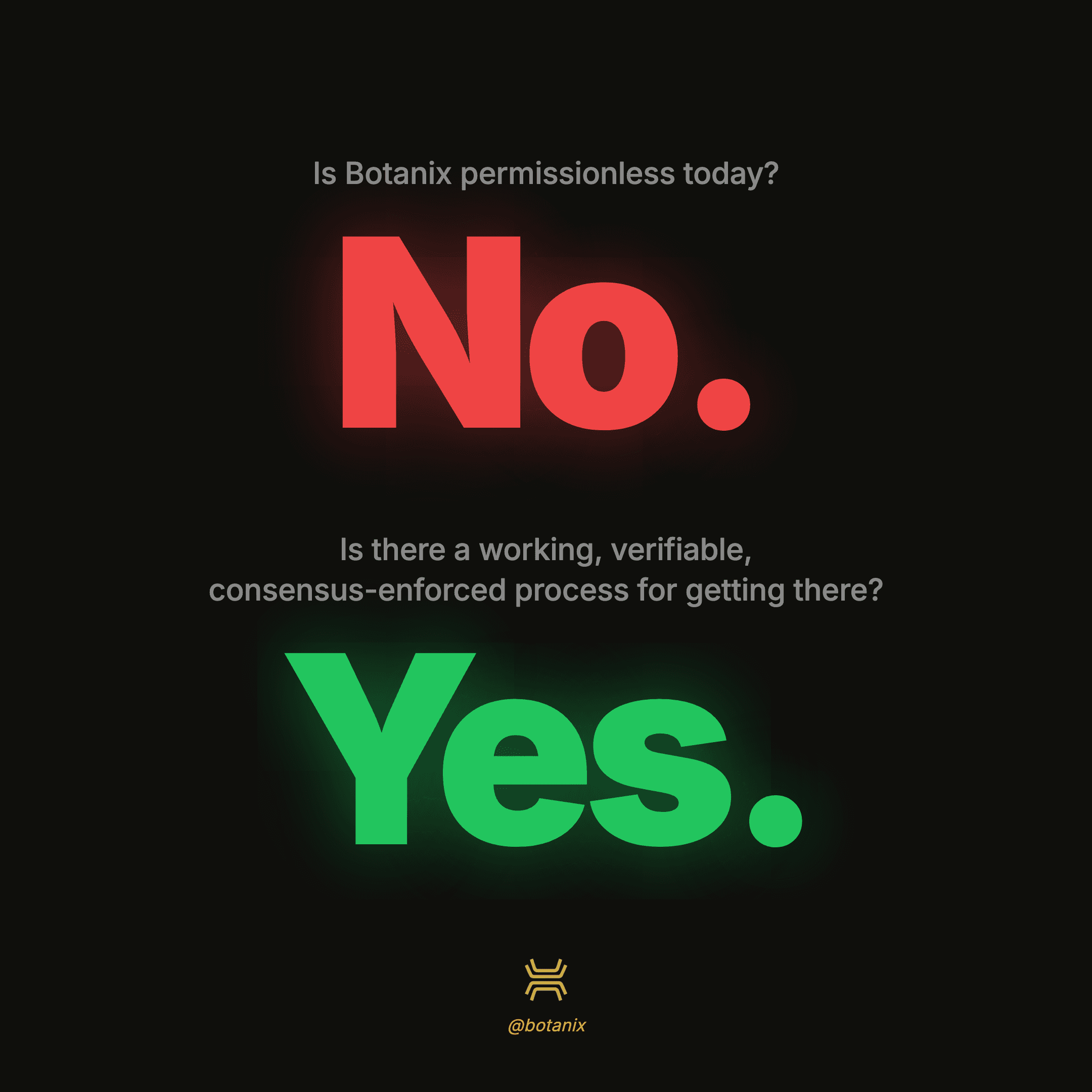 Is Botanix permissionless today? No. Is there a working, verifiable, consensus-enforced process for getting there? Yes. And every step of that process is on-chain for anyone to audit.