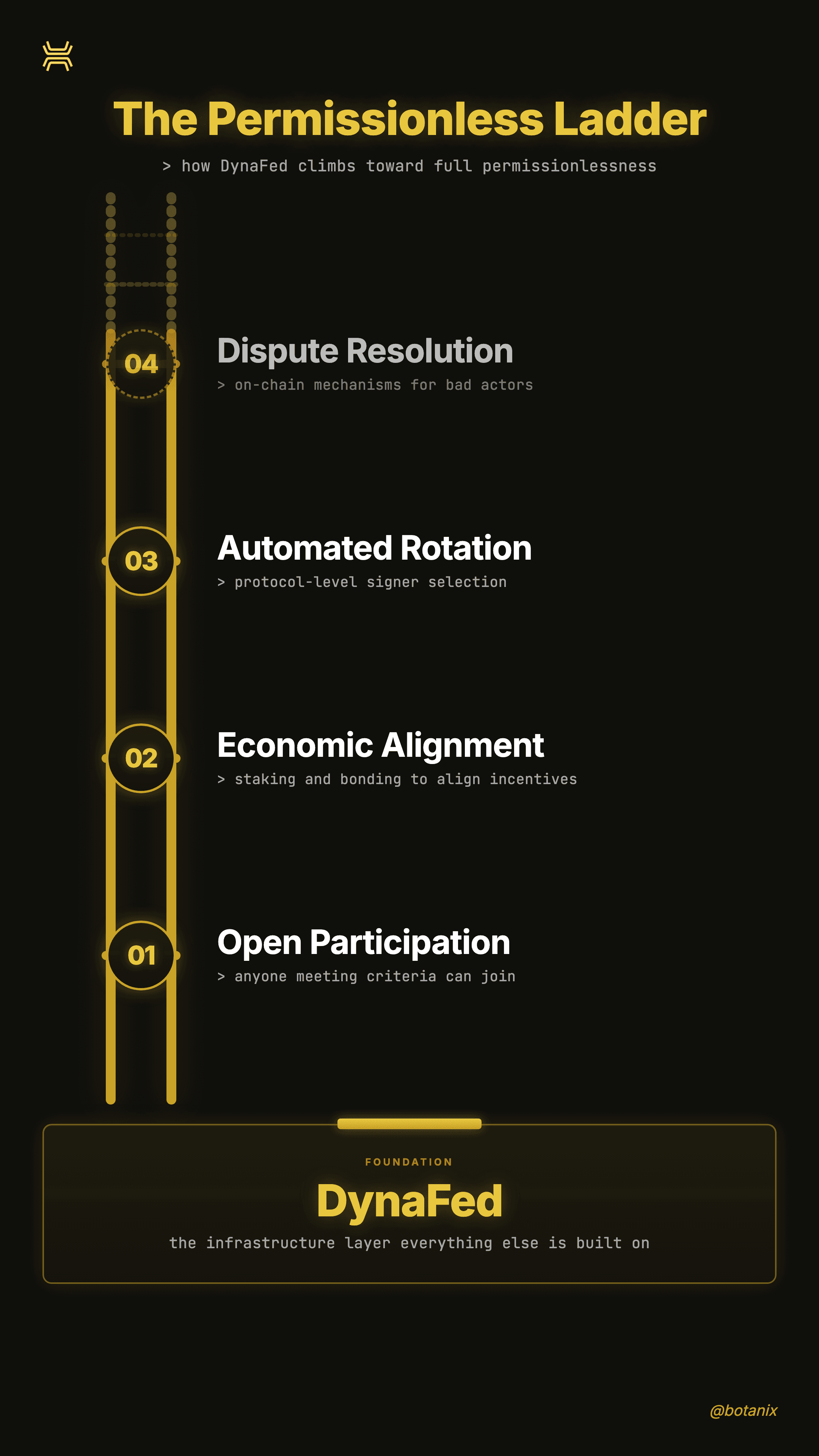 Every step widens the trust set. Every step is auditable. And every step makes the federation harder for any single party including Botanix Labs to capture or control.